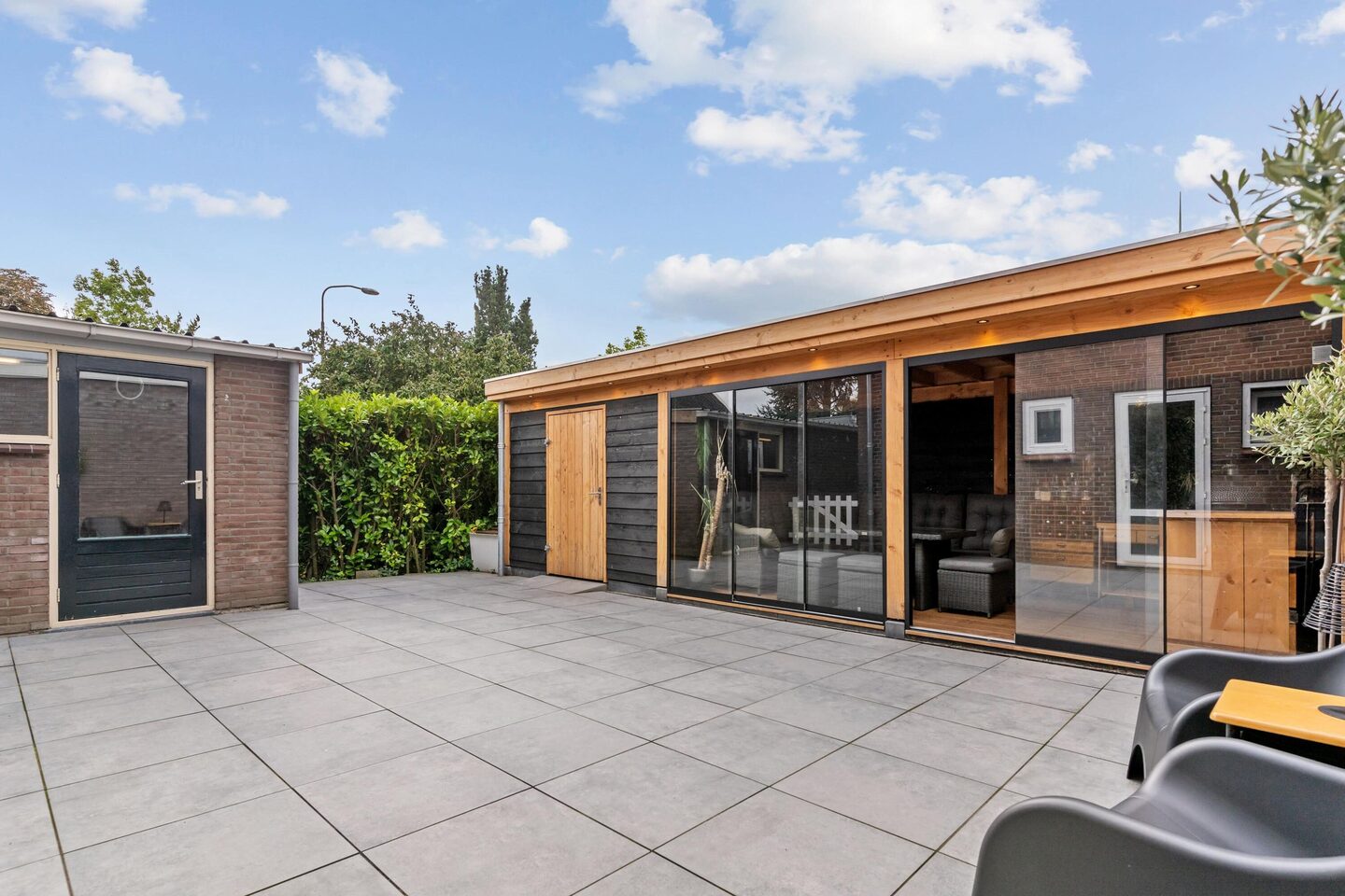 Buiten is het volop genieten. Het grote terras en de royale veranda van maar liefst vijf meter lang maken dit tot een heerlijke plek om te ontspannen. Dankzij de glazen schuifwanden ervaar je hier het hele jaar door een unieke mix van binnen en buiten, met de zon op het zuiden als extra pluspunt.