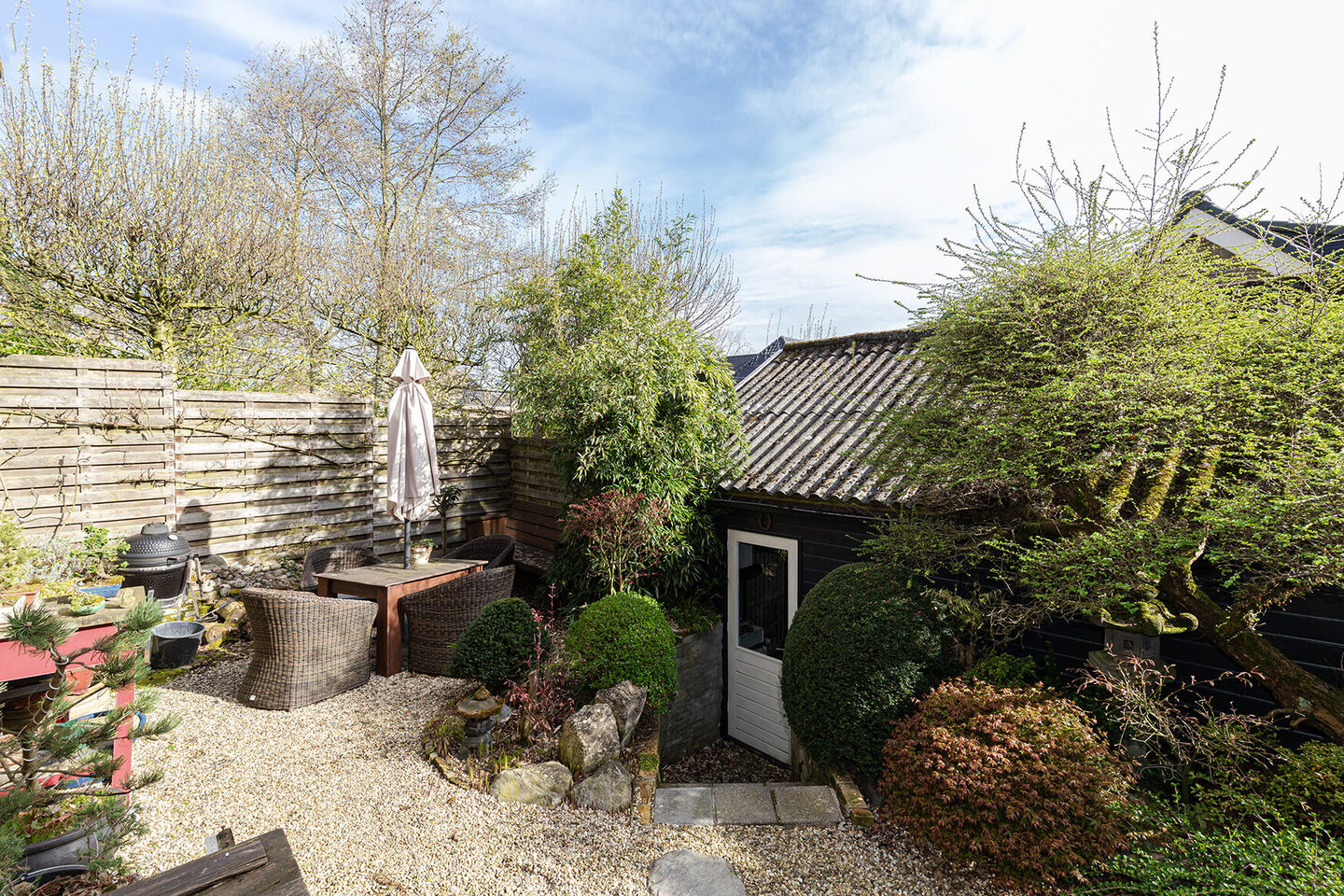 De tuin is een echte verrassing: speels aangelegd met niveauverschillen, gevarieerde beplanting en meerdere terrassen. Hier vind je op elk moment van de dag wel een fijne plek in de zon of schaduw, met volop privacy.