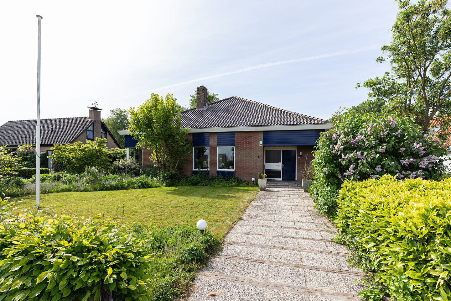 De woning is volledig gelijkvloers ingericht met een compleet woonprogramma op de begane grond en beschikt over een dubbele garage met ruimte voor meerdere auto’s, aangevuld met een houten berging. Het ruime patioterras op het zuidoosten biedt volop zon én privacy, een heerlijke plek om de dag te beginnen of tot rust te komen na een lange wandeling.