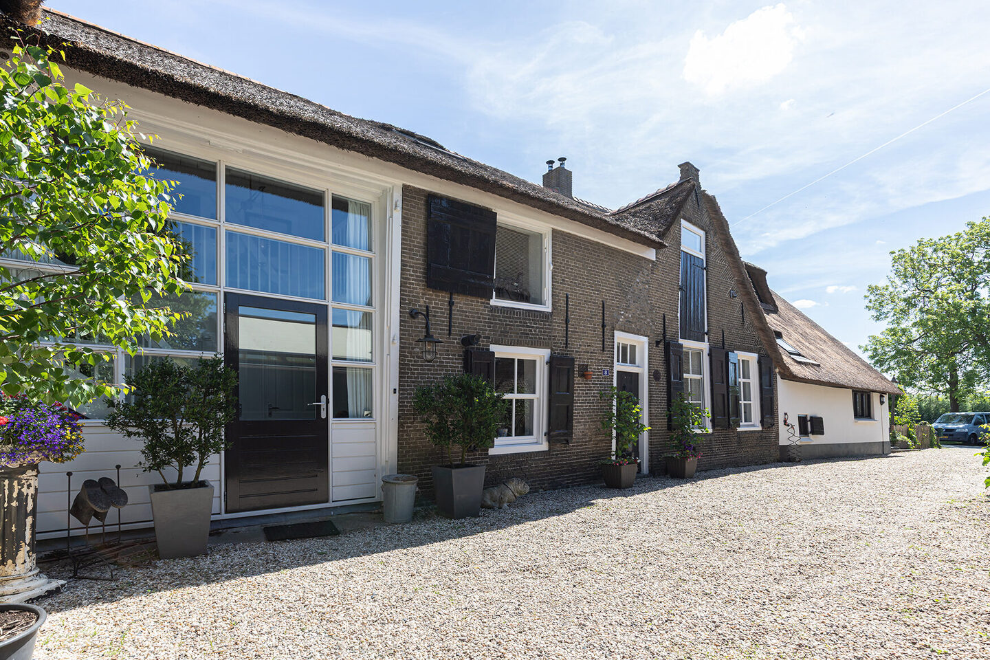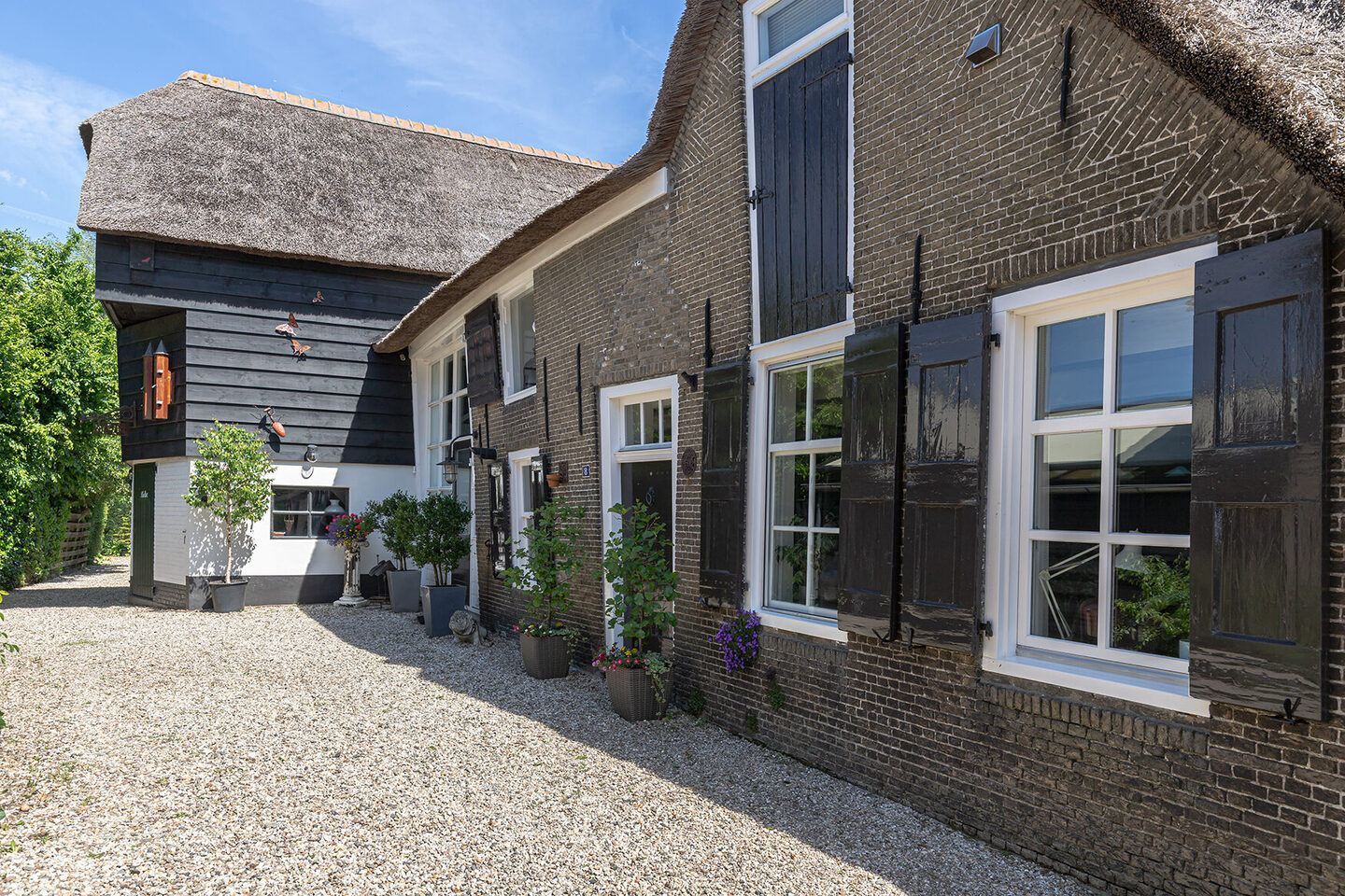 In het hart van de Alblasserwaard, omgeven door natuur en rust, ligt deze bijzondere twee-onder-een-kap woonboerderij uit 1742. Deze karakteristieke woning biedt een veelzijdige leefomgeving met een volledig woonhuis, twee zelfstandige appartementen en een atelier, elk met een eigen entree en indeling. Ideaal voor bijvoorbeeld mantelzorg, kangoeroewonen of een praktijk aan huis. Sinds 2008 is de woning duurzaam verbouwd met hergebruik van oude bouwmaterialen uit de woning zelf en circulaire bouwmaterialen. Daarnaast is de woning voorzien van modern wooncomfort waaronder dubbel glas, vloerverwarming en een brandmeldsysteem dat door de gehele woning is doorgevoerd.