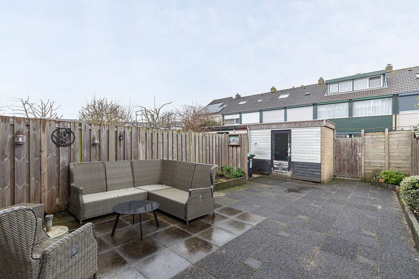 De achtertuin is gesitueerd op het westen, onderhoudsvriendelijk aangelegd en biedt volop privacy. Dankzij de achterom en de praktische berging is er voldoende ruimte voor fietsen en opslag. Hier woon je comfortabel, zonder concessies te doen aan gemak.