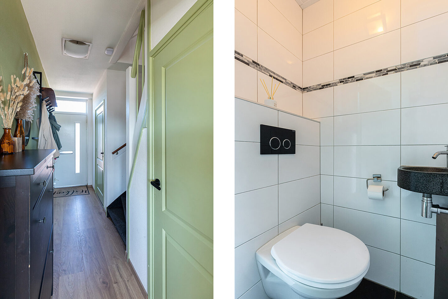 De entree geeft toegang tot de toiletruimte, de trapopgang naar de verdieping en aansluitend de woonkamer. De woonkamer baadt werkelijk in het licht en geniet je van een vrij uitzicht over de wijk. Vanuit hier stap je zo het balkon op, waar je volop kunt genieten van de middag- en avondzon.