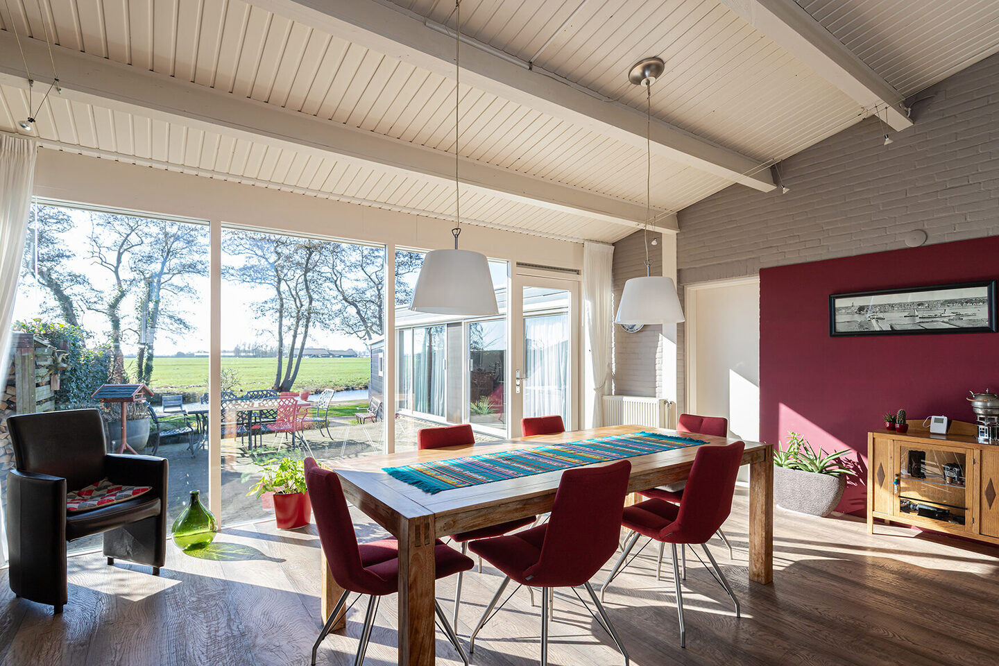 De tuin kijkt vrij uit over de omliggende weilanden en de uitgestrekte polder. Het landschap strekt zich ver uit en geeft een gevoel van rust en ruimte dat hier elke dag zichtbaar is. In de verte is bovendien een karakteristieke molen te zien, wat het uitzicht een typisch Hollands karakter geeft. Hier ervaart u het buitenleven in optima forma, met het polderlandschap als dagelijks decor.