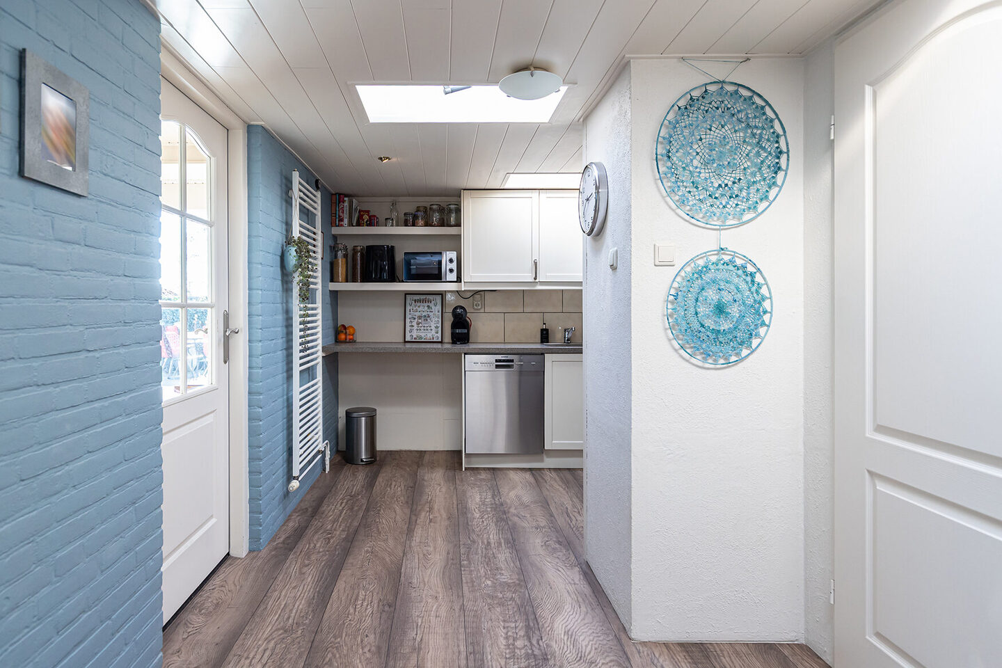 De keuken is uitgevoerd als halfopen keuken, waardoor er een prettige verbinding met de overige leefruimtes bestaat terwijl de keuken toch een eigen plek in de woning behoudt. Deze indeling zorgt voor een praktische opzet met voldoende ruimte om te koken. Vanuit meerdere plekken in de woning ervaart u het ruimtelijke gevoel dat de split level indeling met zich meebrengt.
