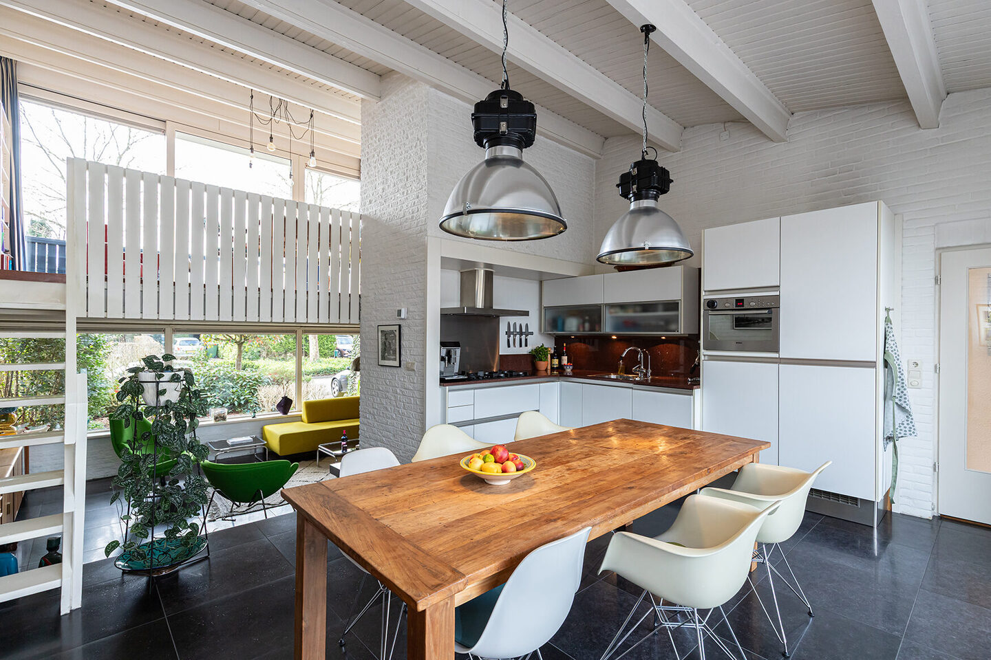 De woonkeuken is praktisch én stijlvol ingericht met een witte Siematic keuken in hoekopstelling en een opvallend rood granieten werkblad. Voorzien van alle gemakken, waaronder een 5-pits gaskookplaat, combioven, vaatwasser en Quooker. Er is volop plek voor een royale eettafel en via de deur sta je zo in de achtertuin.